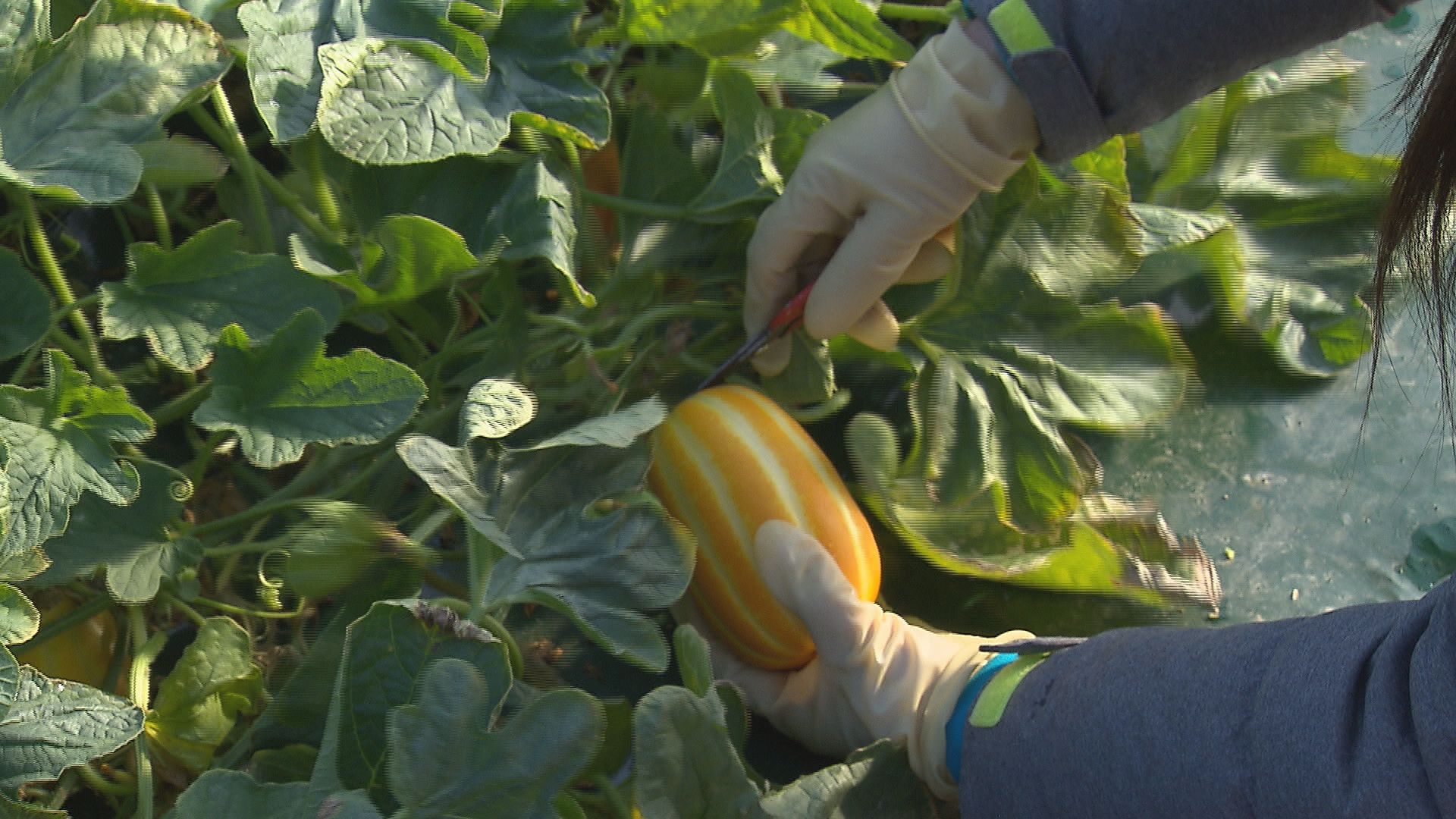 농민 3명이 덩굴을 헤집은 지 불과 몇 분 만에 두 소쿠리의 참외를 수확하는 모습을 볼 수 있었습니다.
