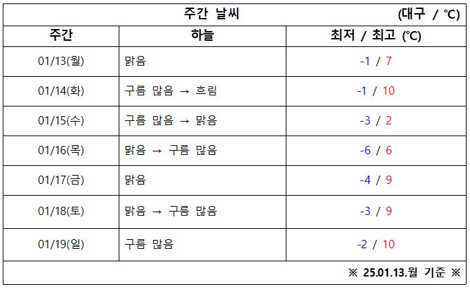 1월 3주 차 대구·경북 '날씨 체크' 시작합니다.