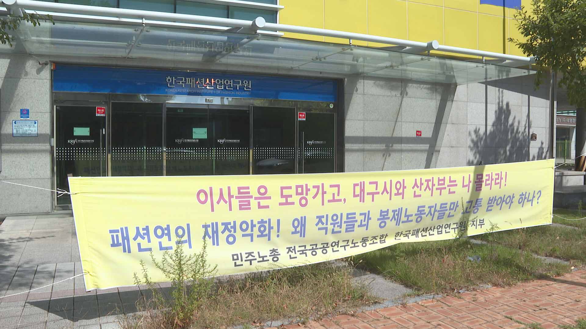 이상성 공공연구노조 한국패션산업연구원지부 부지부장 "일단은 원장님이 없으시고, 그다음에 대구시의 지원이라든가 이런 부분을 완전히 끊어버림으로 인해서 이제 지원 사업이 안 되고 있는 부분입니다."
