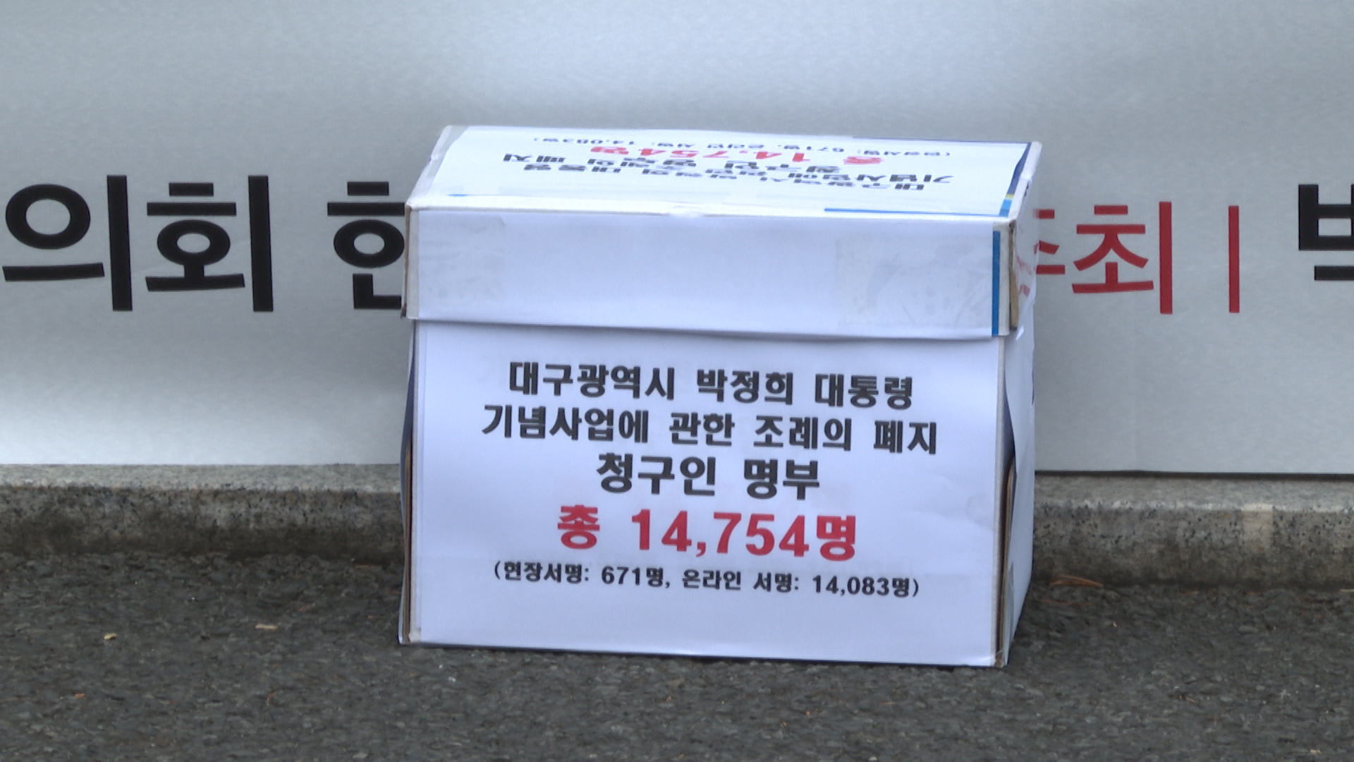 박정희 우상화 사업 반대 범시민운동본부가 1월 16일 오전 대구시의회에 박정희 대통령 기념 사업 지원 조례 폐지를 촉구하는 시민 1만 4,700여 명의 서명을 전달했습니다.