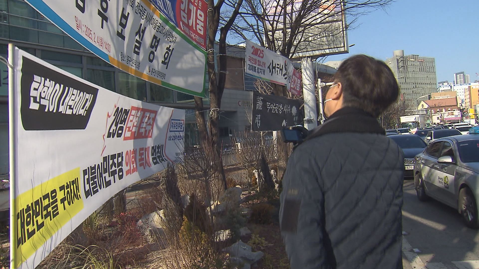 12.3 내란 사태 이후 상대 진영을 비방하는 현수막이 줄줄이 걸렸습니다.