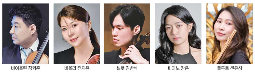 주인공은 ‘앙상블 데오스’로 지역에서 활발히 활동하는 바이올리니스트 장혁준을 중심으로 비올리스트 전지윤, 첼리스트 김반석, 피아니스트 장은, 대만 출신 플루티스트 셴유칭이 만든 실내악 단체입니다.