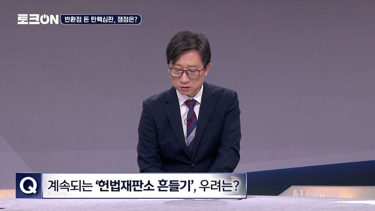 토크ON은 반환점을 돈 탄핵 심판의 이모저모와 앞으로 살펴봐야 할 쟁점들에 대해 논의했습니다. 강우진 경북대 정치외교학과 교수님, 이승협 대구대 사회학과 교수님 두 분 모시고 이야기 나눴습니다. 오늘 좋은 말씀 주신 두 분께 감사드립니다.