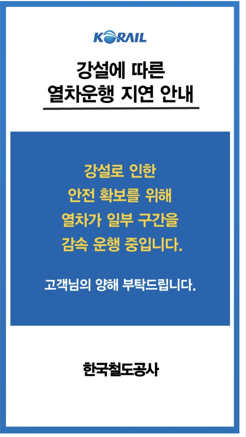 코레일 측은 운행 중 열차에 달라붙은 얼음이 떨어지면서 자갈이 튀어 유리창이 파손되는 경우가 있어 감속 운행한다고 설명했습니다.