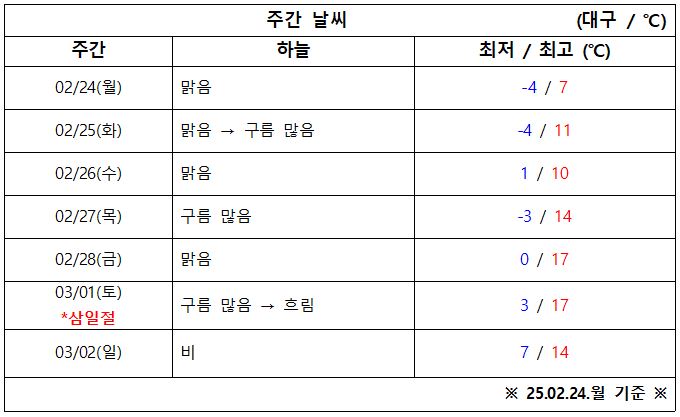 2월 4주 차 대구·경북 '날씨 체크' 시작합니다.