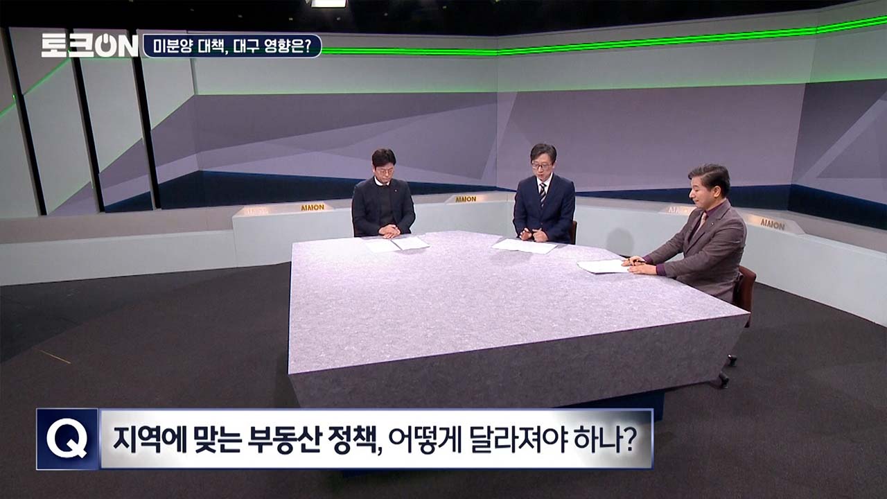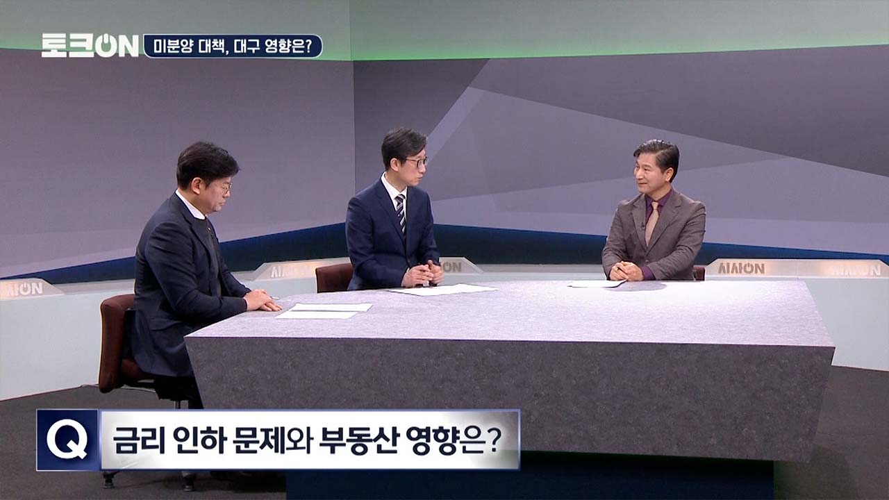 토크ON에서는 대구 부동산 시장에 대해 이야기를 나눠봤습니다. 이병홍 대구과학대 금융부동산과 교수님, 송원배 대구경북 부동산분석학회 이사님, 두 분 모시고 좋은 말씀 들었습니다. 감사합니다.