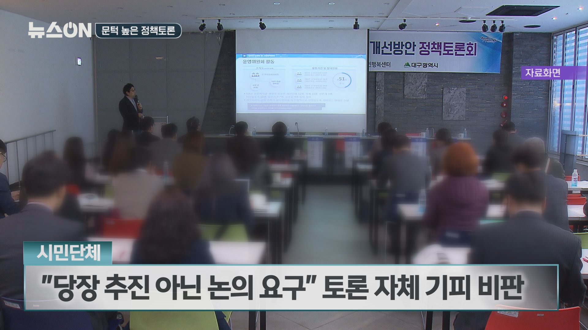 정책토론 청구 조례는 대구시가 김범일 시장 당시인 지난 2008년 전국에서 최초로 만든 것입니다. 요즘 지방자치, 주민참여 이런 말을 지방 행정에 많이 쓰는데요. 대구시는 과연 이런 행정을 하고 있는지, 되묻고 있습니다.
