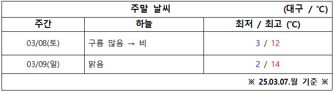 3월 1주 차 대구·경북 주말 '날씨 체크'