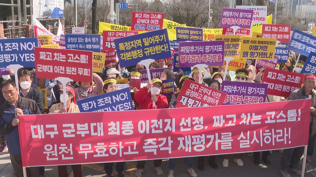 이들은 결의문을 통해 "군부대는 군사 작전성, 입지 적합성, 주민 수용성 등을 고려해 후보지를 평가해야 함에도 대구시는 공정성과 투명성이 결여된 대구정책연구원에게 평가 대행을 맡겼다"라고 주장했습니다.
