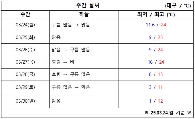 3월 4주 차 대구·경북 '날씨 체크' 시작합니다.