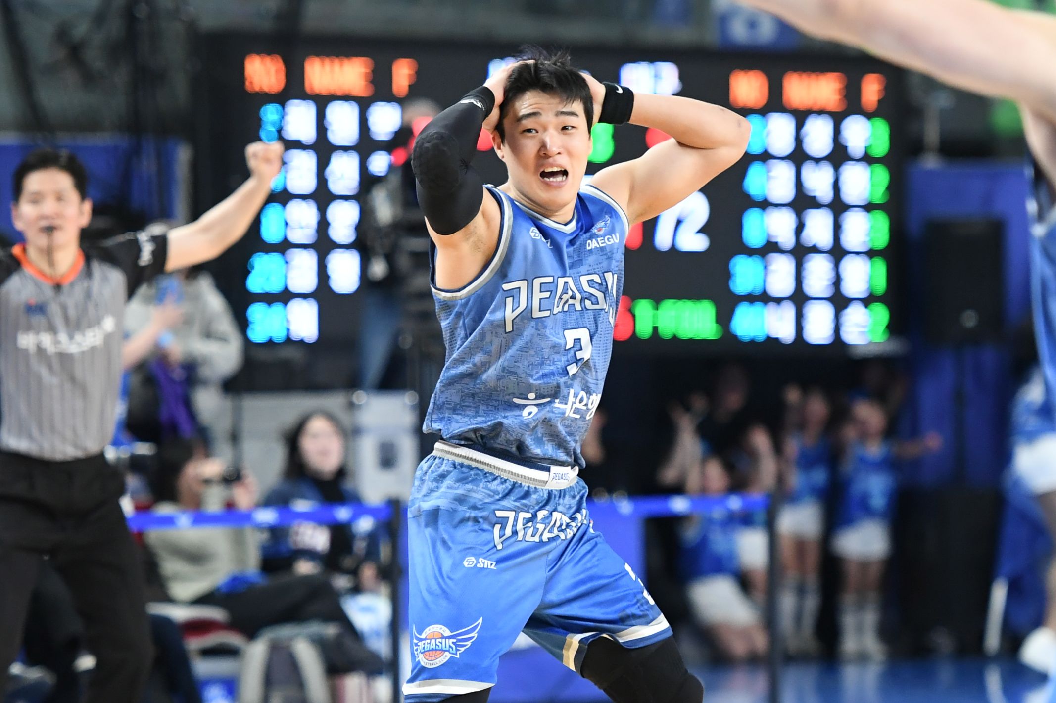 팀 승리를 만든 정성우는 전날부터 슈팅 연습을 이어갔고, 준비했던 장소에서 기회가 와서 성공할 수 있었다며, 본인의 가스공사 첫 시즌이 봄농구로 이어져 기쁘다는 소감을 전합니다.