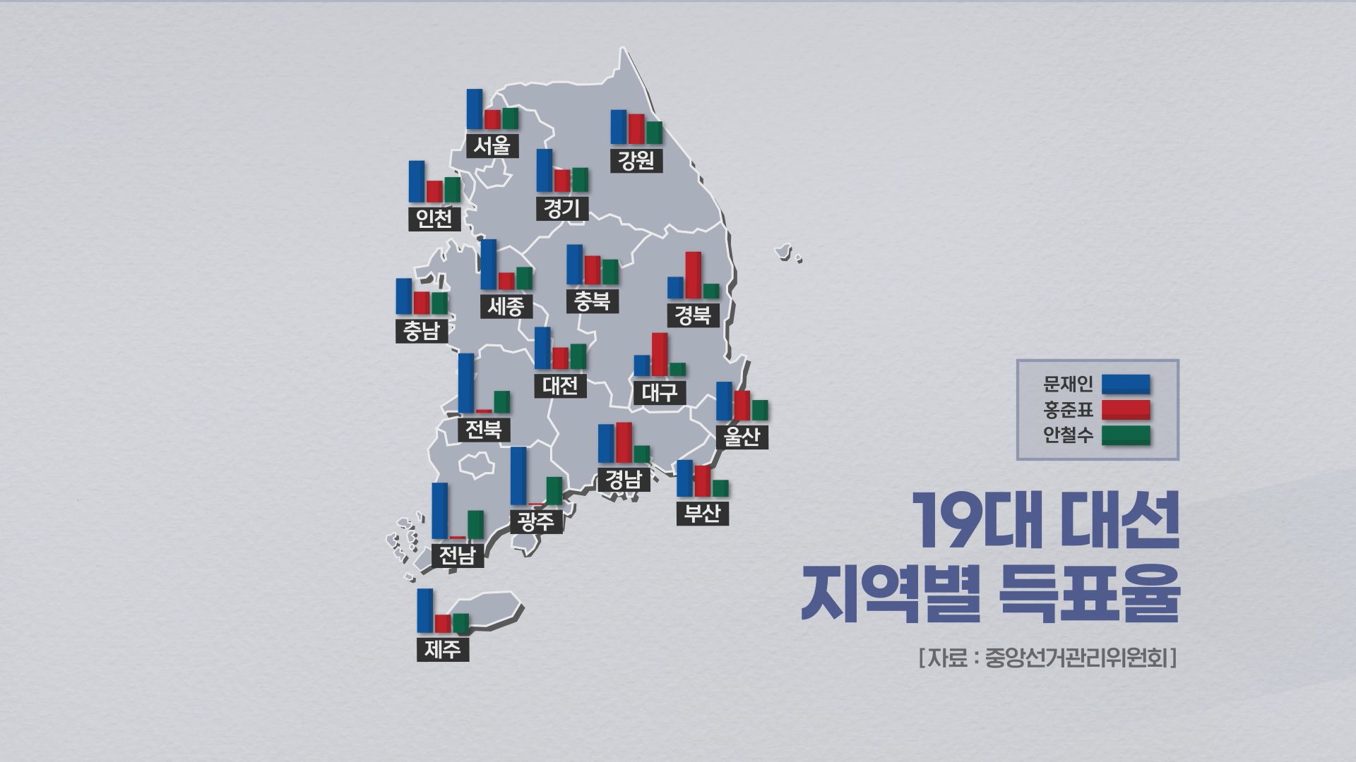 박근혜 전 대통령 파면으로 진행된 19대 대선을 살펴보면요. 투표율은 77.2%로 역대 가장 높았고 문재인 당시 후보가 득표율 41.08%로 승리했습니다. 당시 국민의힘 전신인 자유한국당, 보수진영 후보였던 홍준표 후보는 득표율 24.03%였고, 대구와 경북을 제외한 모든 지역에서 민주당 득표율을 넘지 못했습니다. 그만큼 자당이 배출한 대통령 과오, 국정농단에 대한 심판 성격이 강했는데요.