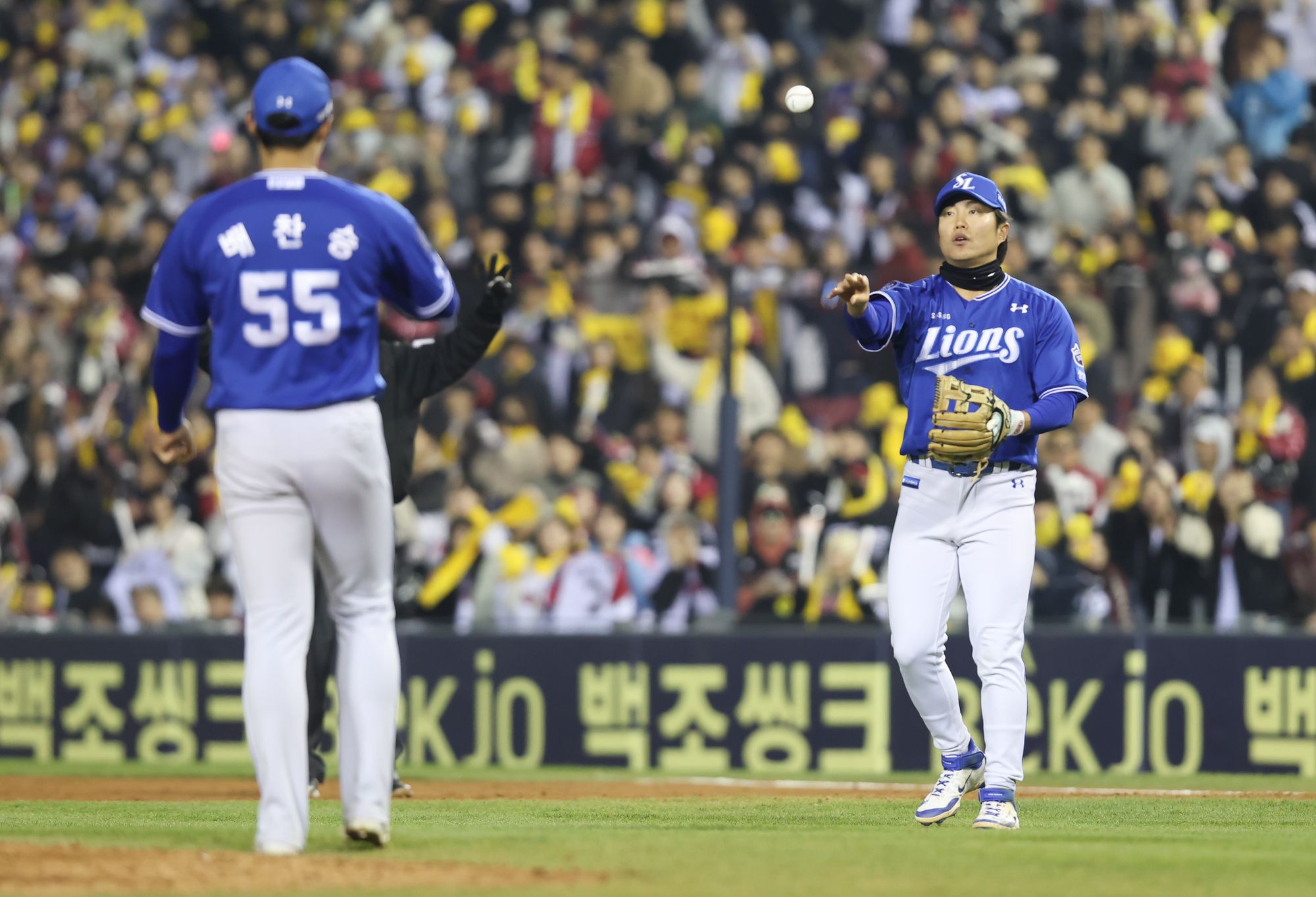 7회초 3명의 타자를 모두 삼진으로 처리한 김진성부터 8회 등판한 박명근까지 출루 없이 이닝을 마무리한 LG는 9회 초 1아웃 이후, 장현식이 이재현과 김성윤을 볼넷으로 내보내며 위기도 있었지만, 류지혁을 병살로 처리하며 경기를 마무리합니다.