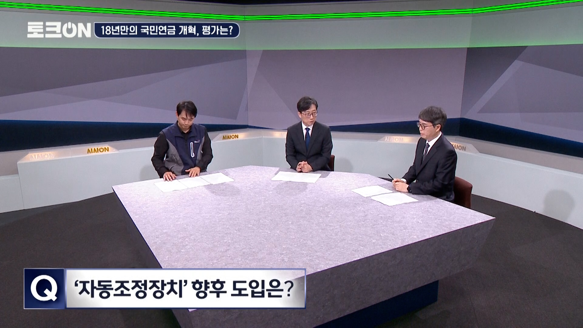 연금 개혁 이후에, 모수 개혁 이후에 남아 있는 쟁점 한번 살펴보겠습니다. 주요 쟁점 중의 하나였던 ‘자동조정장치’는 이번에는 도입되지 않았습니다. 이게 정부가, 국민의힘은 재정 안정성을 높이기 위해서 자동 조정장치 도입을 제안하고 있었는데, 더불어민주당은 반대했고요. 어떤 역할을 하는 것이고 도입이 왜 필요한지, 이거는 연금 담당하고 계신 오 위원장님께 먼저 질문을 드리는 게 좋을 것 같습니다.