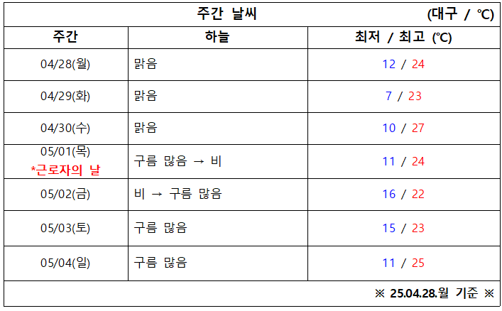 4월 마지막 주 대구·경북 ‘날씨 체크’ 시작합니다.