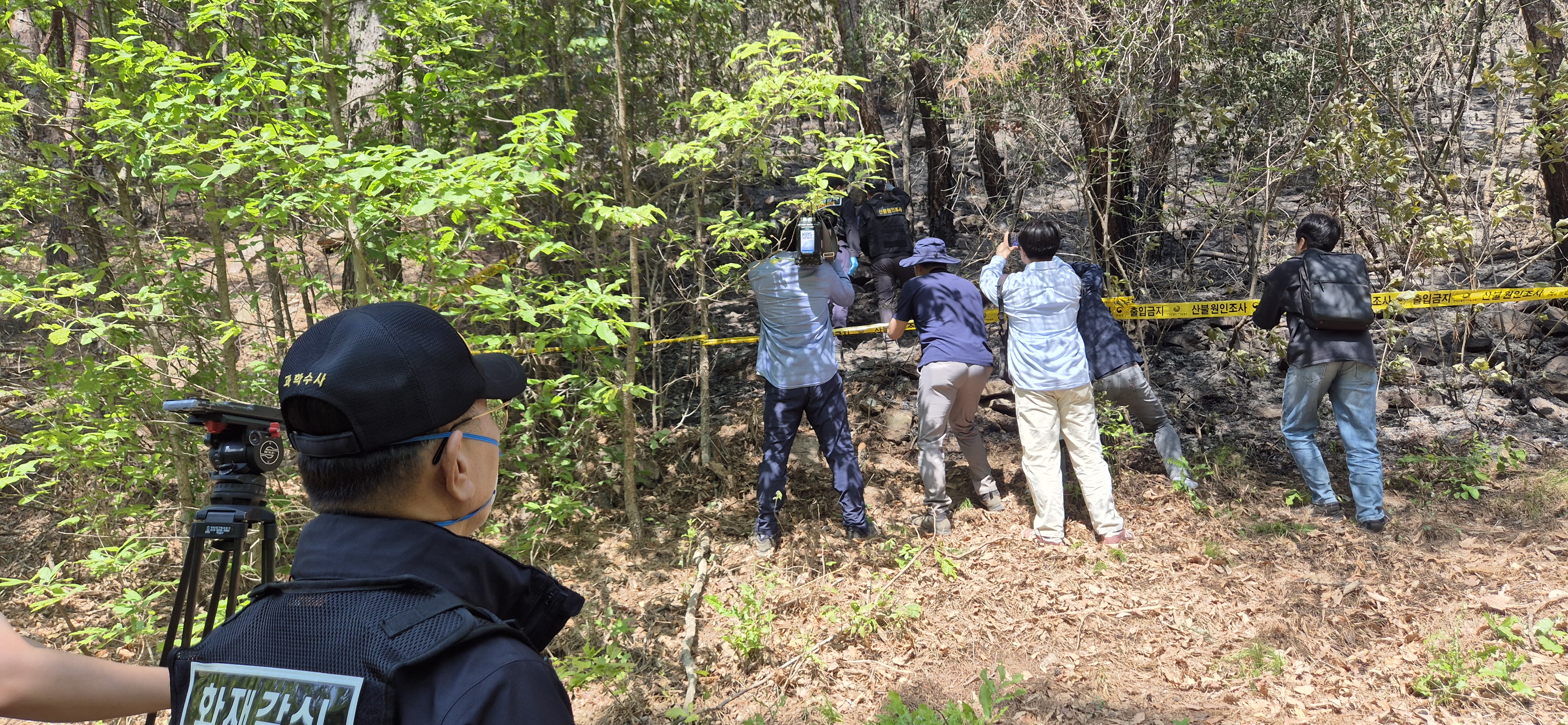현장 조사관은 "현장이 등산로에서 벗어난 농로이고, 농작지와도 거리가 떨어져 있어 화재 원인을 단정지을 수 없다"며 다만 "실화나 방화 가능성을 열어두고 조사하고 있다"고 밝혔습니다.