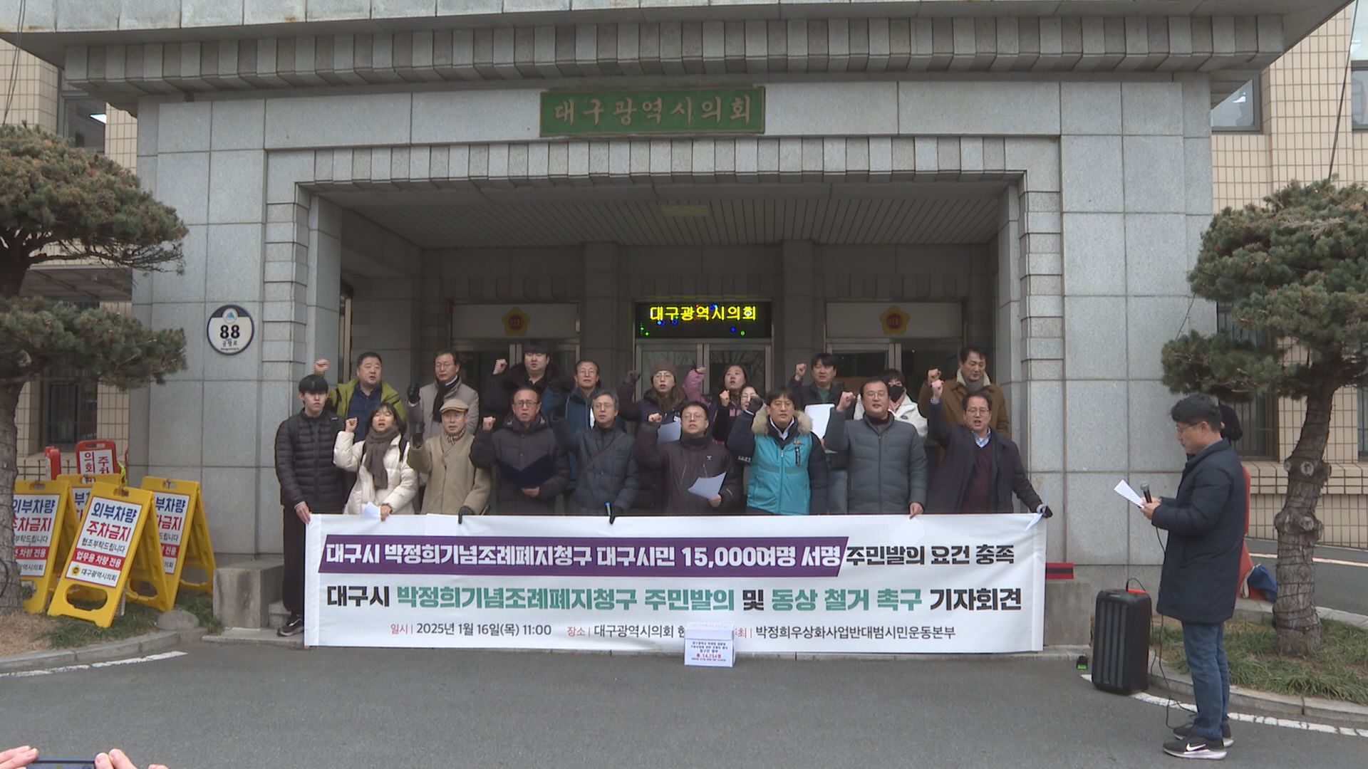 박정희우상화반대 범시민운동본부가 조례 폐지를 위한 서명운동을 했고요. 2025년 1월까지 만 4,700여 명이 서명했습니다. 물론, 대구시의회가 청구를 수용한 게 조례를 폐지한다고 볼 수 없습니다. 일단은 청구 요건을 충족했기 때문에 수리 결정이 된 겁니다.
