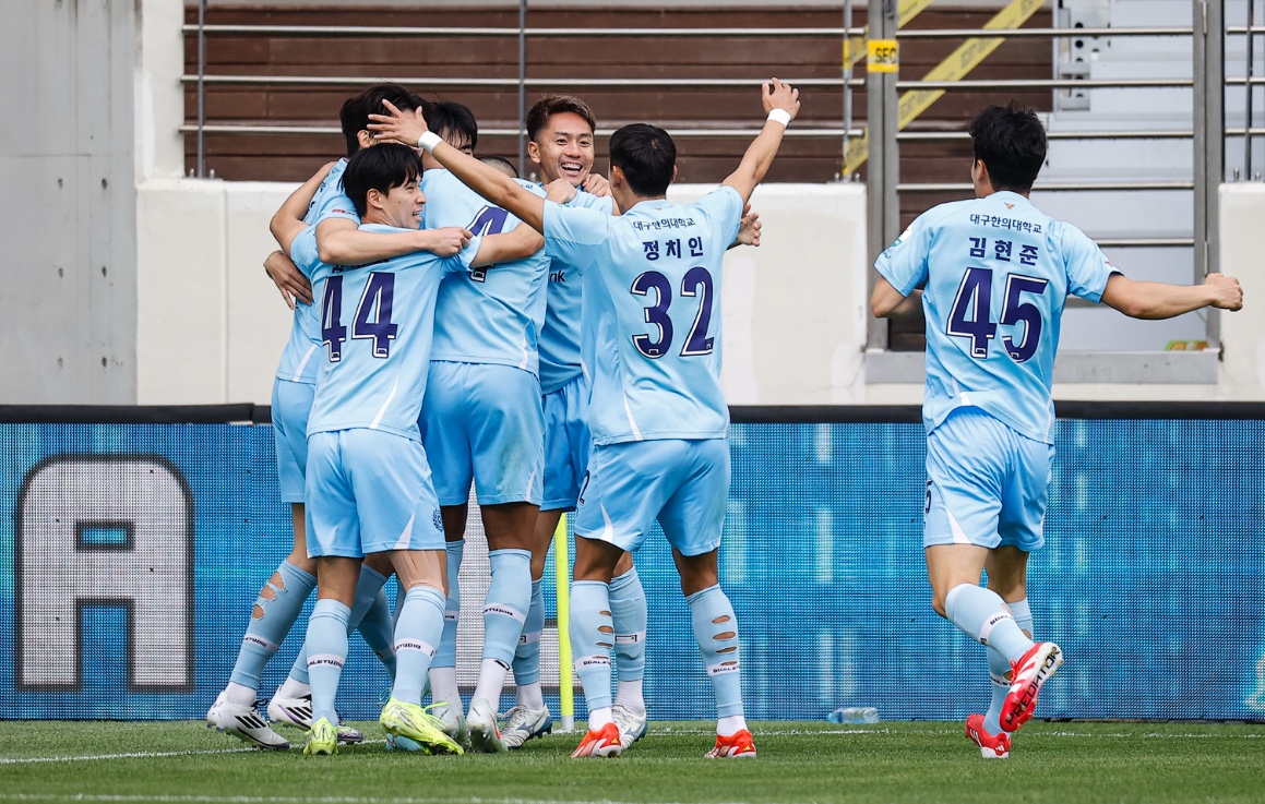 3일 오후 대구iM뱅크파크에서 펼쳐진 하나은행 K리그1 2025 제주SK와의 11라운드에서 대구FC는 경기 시작과 함께 터진 요시노의 득점을 시작으로 정치인, 에드가의 득점이 이어지며 3-1 승리를 거둡니다.