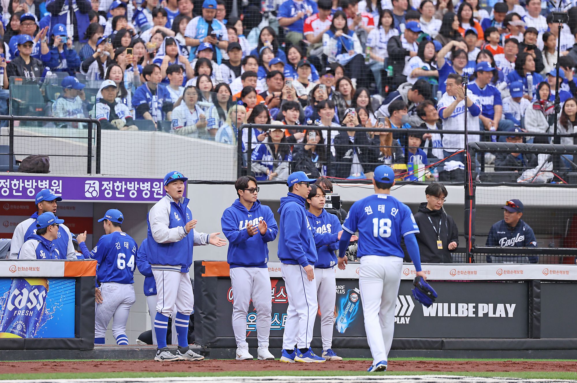 중심타자인 구자욱은 상대 선발 류현진의 투구에 팔꿈치를 맞고, 결국 3회말 수비에 교체되면서 아쉬움을 더했습니다.