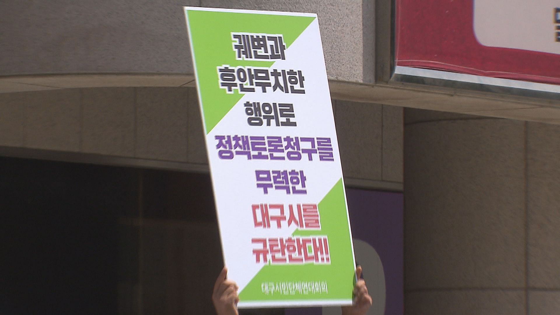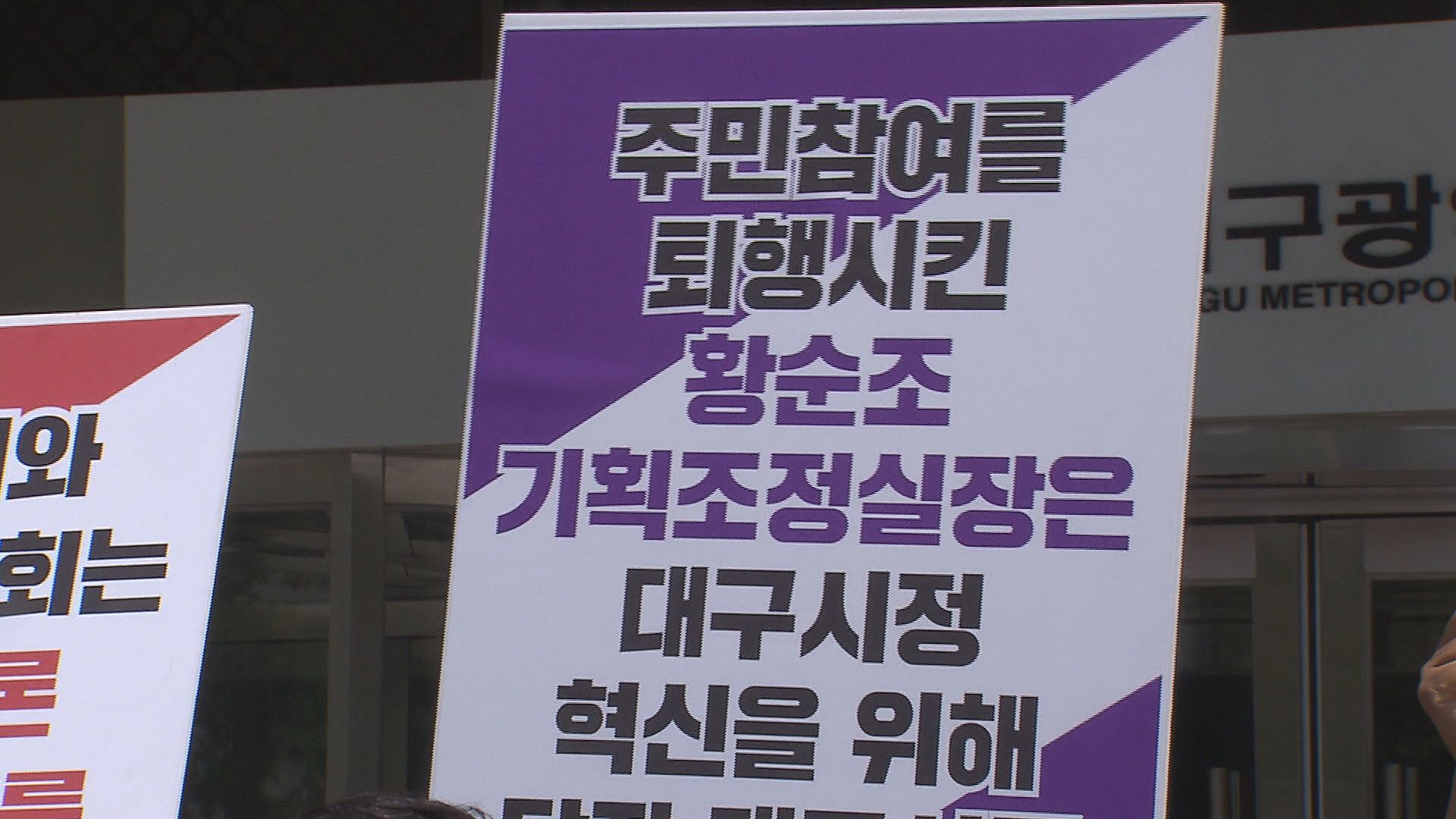 시민사회는 정책 토론 제도 퇴행에 책임을 지고 황순조 기조실장이 자리에서 물러나고, 김정기 대구시장 권한대행도 사과하라고 촉구했습니다.