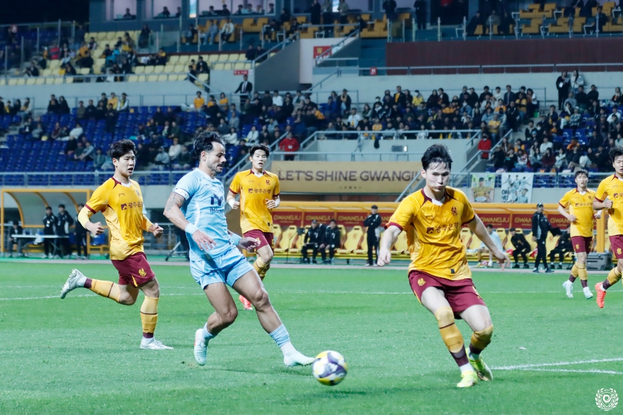 세징야는 지난 4월 9일 광주월드컵경기장에서 펼쳐졌던 하나은행 K리그1 2025 광주와의 10라운드에서 0-2로 끌려가던 후반 42분 코너킥 상황에서 강력한 킥과 함께 '코너킥 다이렉트 득졈'에 성공합니다.