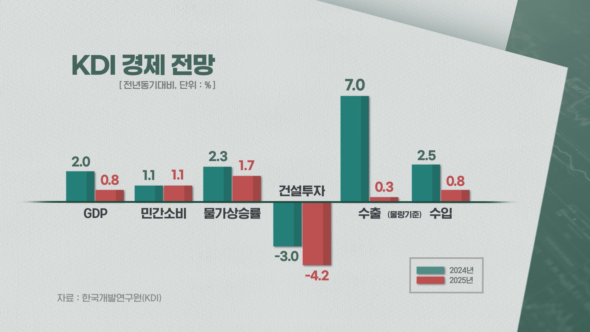 한국개발연구원 KDI가 발표한 2025년 상반기 경제전망에서 우리나라 경제성장률을 0.8%로 전망했습니다.