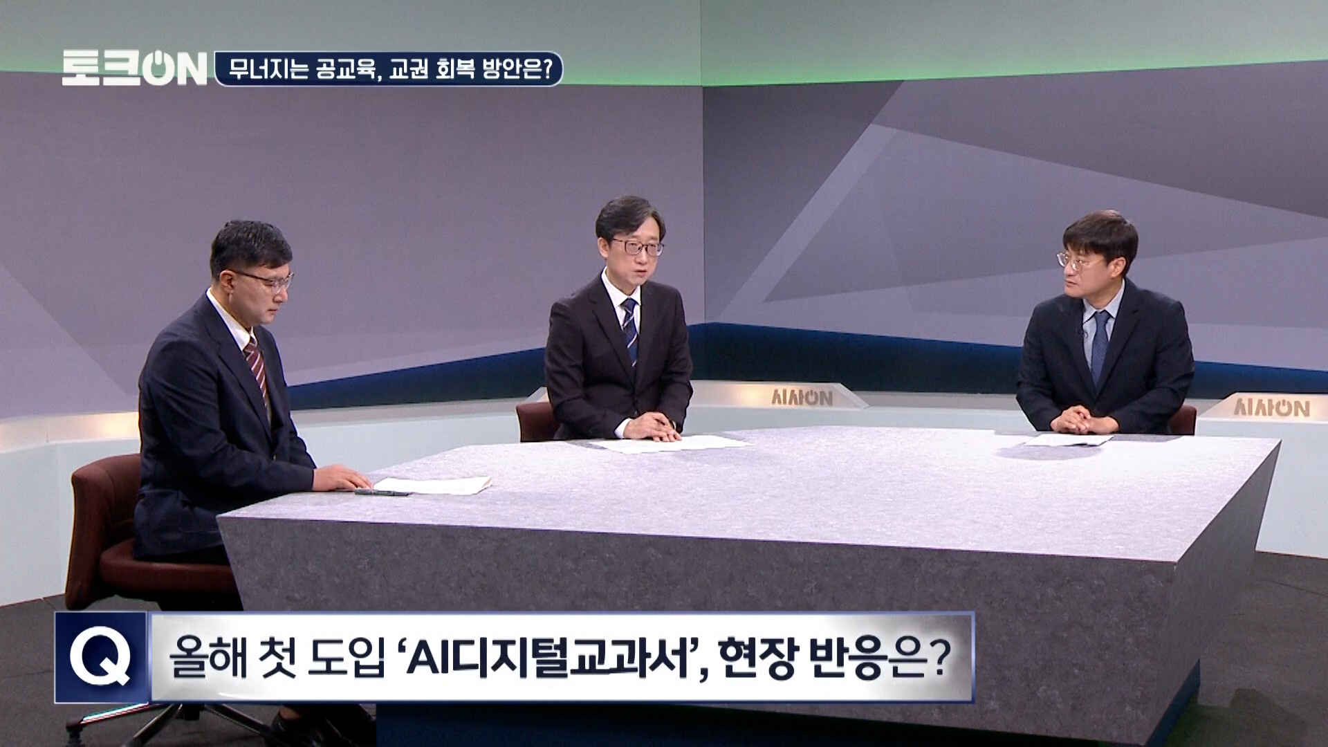 AI 디지털교과서가 빠르게 도입되었죠. 그러나 교사들 사이에서는 “운전도 제대로 안 배웠는데 운전대 잡고 출발하는 격이다.” 이런 평가를 하시는 분들이 있는 것 같습니다. 충분한 교사 연수와 AI 기반의 수업 설계가 어떤 것인지, 학생들 수준에 맞는 AI 맞춤형 수업은 어떻게 구성하는 것인지, 학생들은 그것들에 대해서 어떻게 실질적으로 학습하는 것인지, 이런 것들이 충분히 준비되어야 한다는 점들이 있고요.