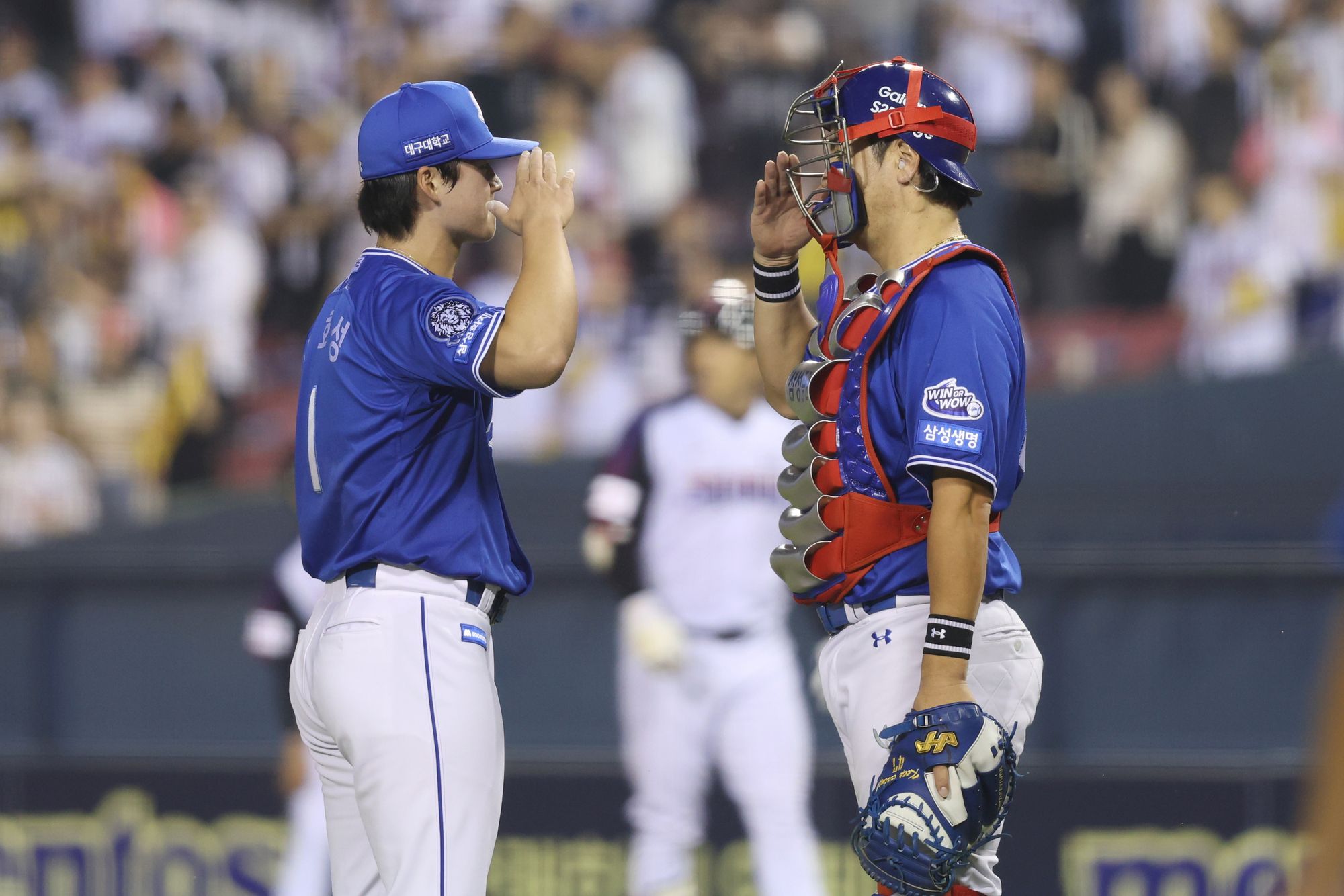 신민재의 적시타로 턱밑까지 쫓긴 삼성은 김영웅이 파울 플라이로 어려운 타구를 처리했고, 한 번의 실책을 기록했던 박승규가 뜬 공 2개를 잡아내며 팽팽했던 승부를 마무리했습니다.