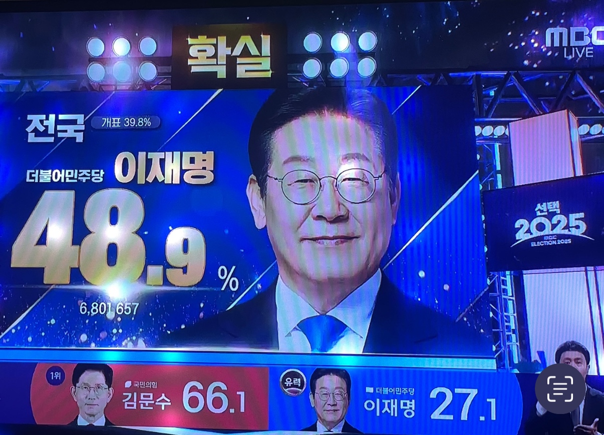 21대 대통령 선거 개표가 40%가 넘어선 지점에서 MBC 당선예측시스템이 이재명 더불어민주당 대선 후보의 당선이 확실할 것으로 예측했습니다.