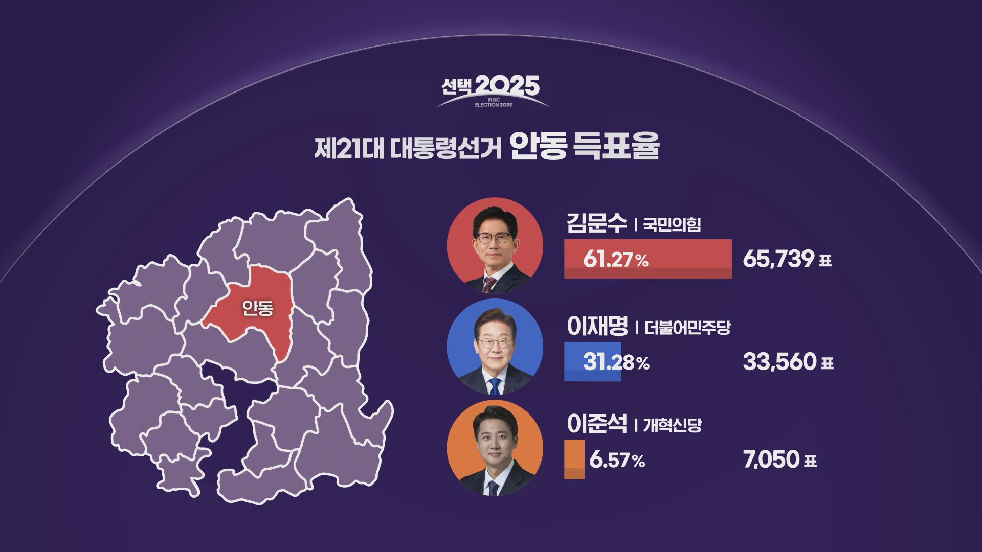 또 한 측면은 대구보다 경북이 높게 나왔거든요. 시군별 득표율 현황을 보면 안동시가 처음으로 30%를 넘겼습니다. 이재명 대통령의 고향 그리고 그 주변 지역들에는 충분히 영향이 미치면서 농촌 지역임에도 불구하고 봉화, 영양 이런 지역들이 과거보다 득표율이 올라갔거든요. 민주당 입장에서는 이 부분을 앞으로 얼마나 더 살릴 것인가가 과제로 남은 결과가 아니었나 싶습니다.