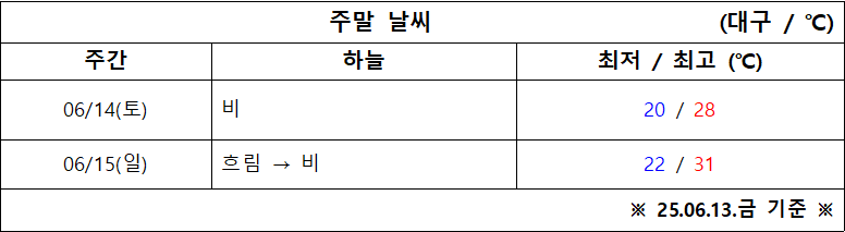 6월 2주 차 대구·경북 주말 ‘날씨 체크’