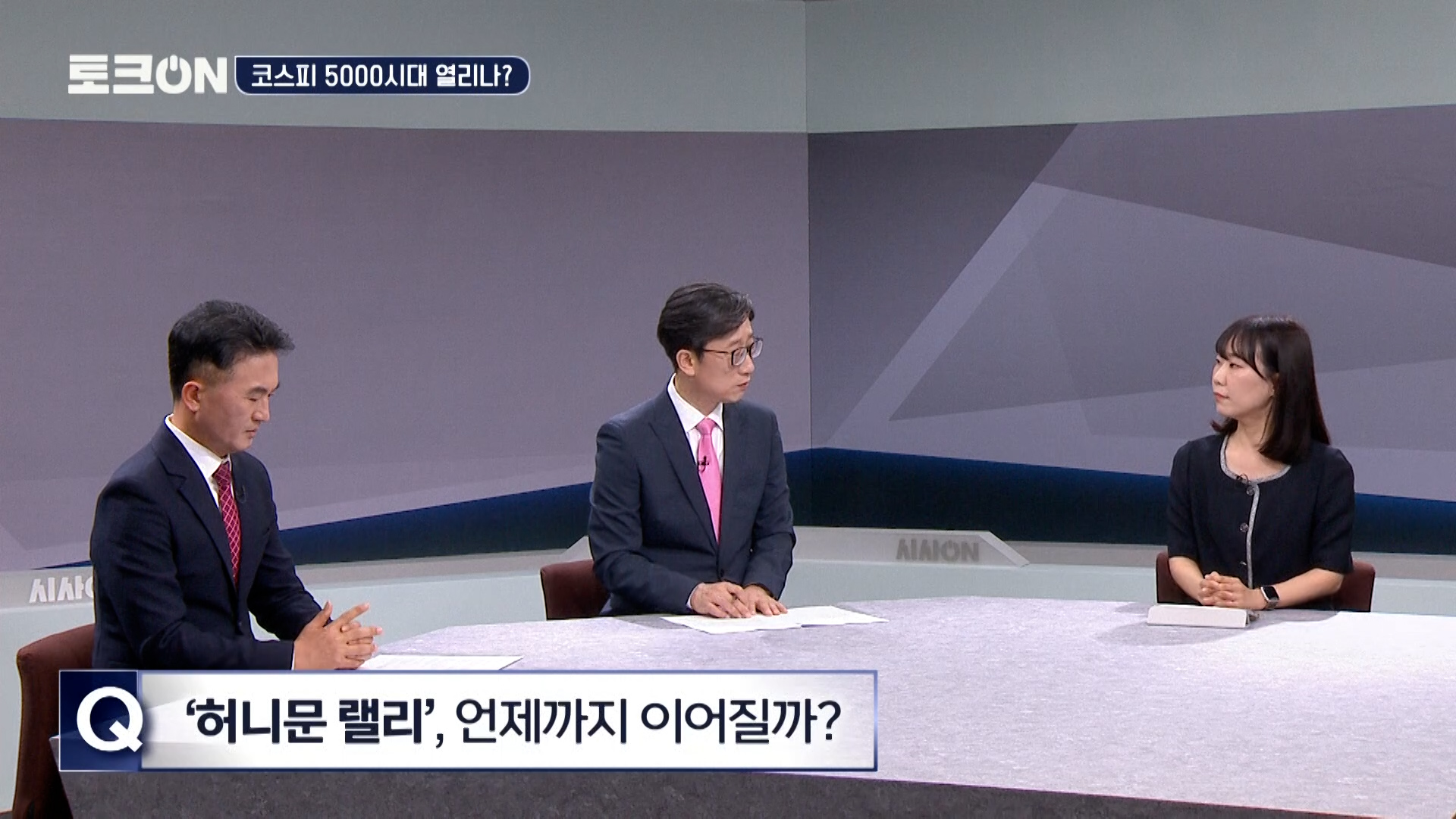 안녕하십니까. 황세운 자본시장연구원 연구위원, 옥영경 IM금융지주 전략경영연구소 연구위원 나오셨습니다. 이재명 대통령이 선거 기간에 코스피 5000시대를 열겠다고 말했습니다. 요즘 젊은 사람들 말로 '가슴이 웅장해지는' 이야기일 수 있습니다. 코스피 5000시대 실현 가능할지, 두 분 의견 먼저 들어보고 시작하겠습니다.