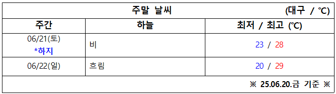 6월 3주 차 대구·경북 주말 ‘날씨 체크’