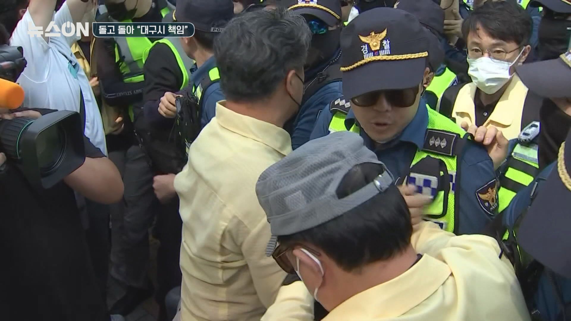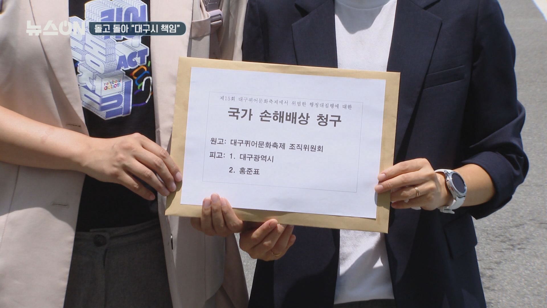 퀴어문화축제는 동성로 대중교통전용지구에서 열려왔습니다. 그런데 2023년, 홍준표 전 시장은 행사 무대 차량이 도로 점용허가를 받지 않아서 불법이라며 차량 진입을 공무원들을 동원해 저지했고요. 조직위는 물론 당시 대구경찰청도 집회 신고를 했고, 금지 가처분 신청도 법원이 받아들이지 않았다며 적법한 집회라며 맞서다가 사상 초유의 공무원과 경찰, 기관 간 물리적 충돌이 빚어지기도 했습니다. 이후 퀴어문화축제 조직위는 대구시와 홍준표 전 시장을 상대로 손해배상청구소송을 냈습니다.