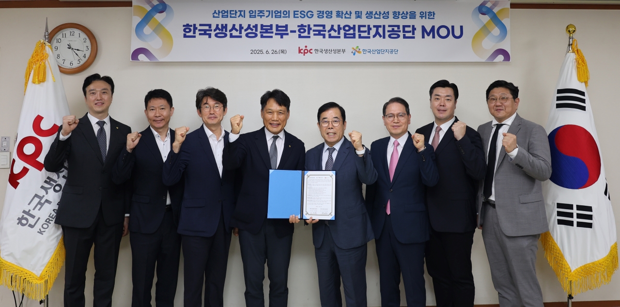 한국산업단지공단과 한국생산성본부는 6월 26일 산업단지 입주기업의 ESG 경영 확산과 생산성 향상을 위한 업무협약을 체결했습니다.