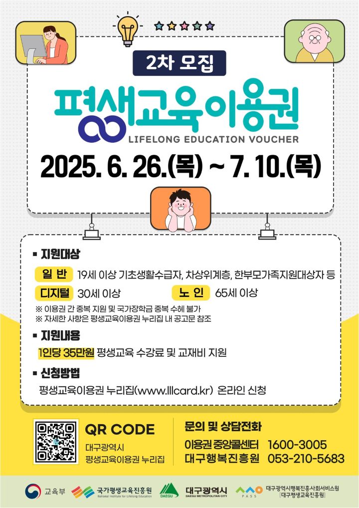 대구시 행복진흥사회서비스원은 취업 준비나 직무 역량 강화, 은퇴 후 자기 계발 등에 쓸 수 있는 '평생교육 이용권'을 저소득층을 중심으로 신청받아 나눠줍니다.