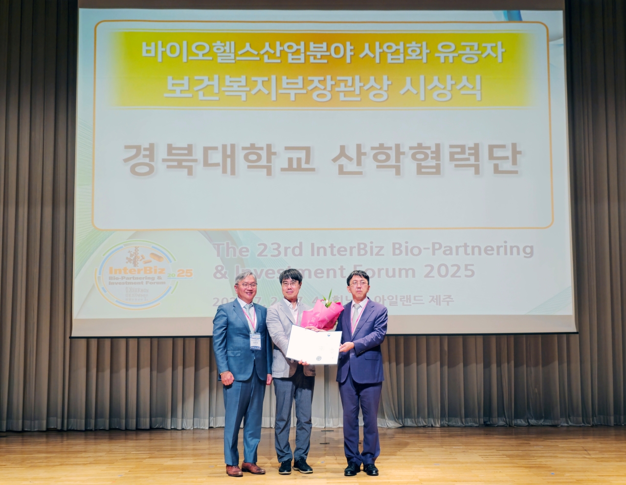 경북대학교 산학협력단은 바이오헬스산업 분야 기술사업화 활성화에 기여한 공로를 인정받아 보건복지부 장관 표창을 받았습니다.