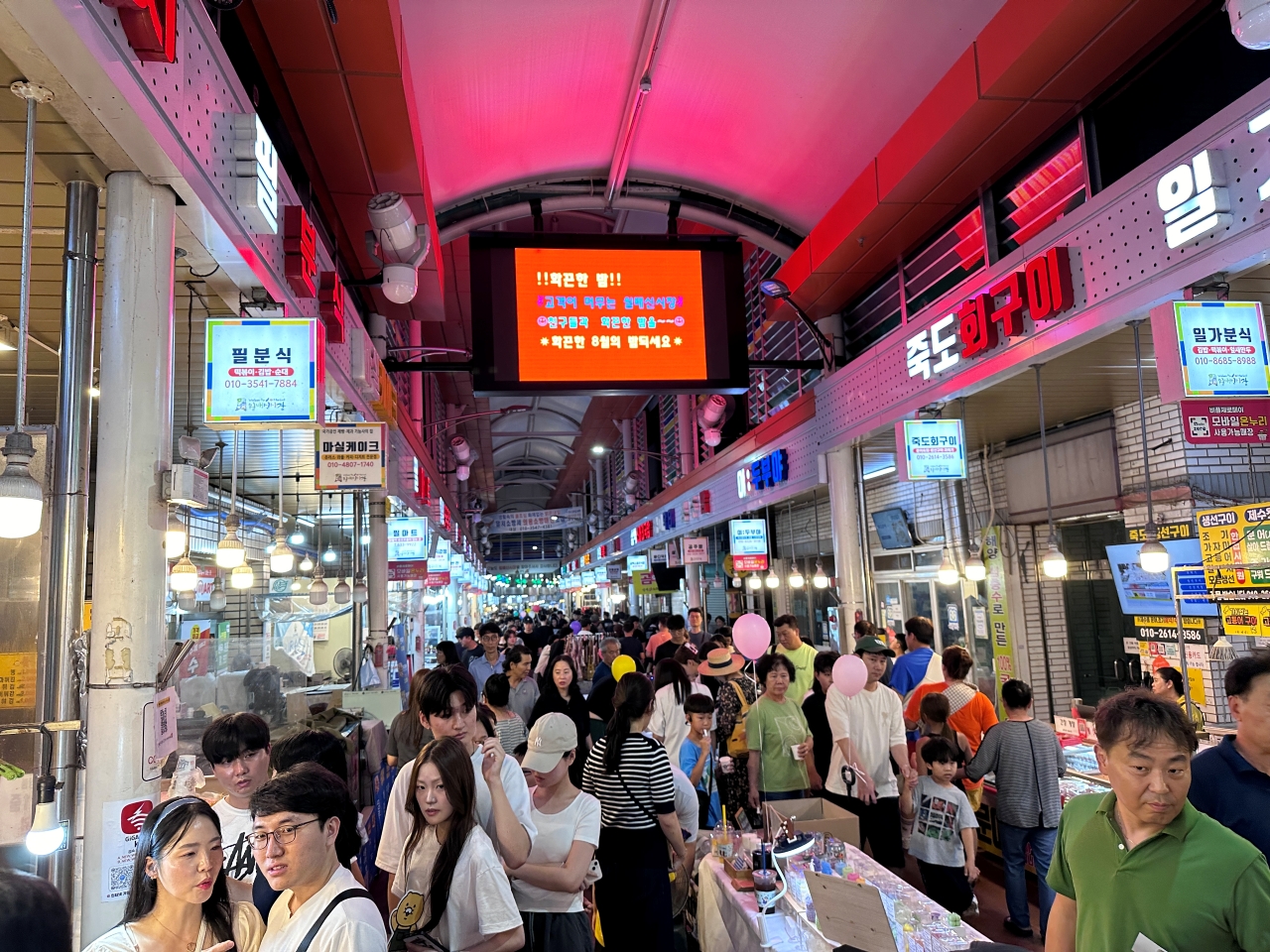 시장 점포 29곳과 팝업 스토어 16곳이 참여해 분식과 회, 피자 등 먹거리를 선보입니다.