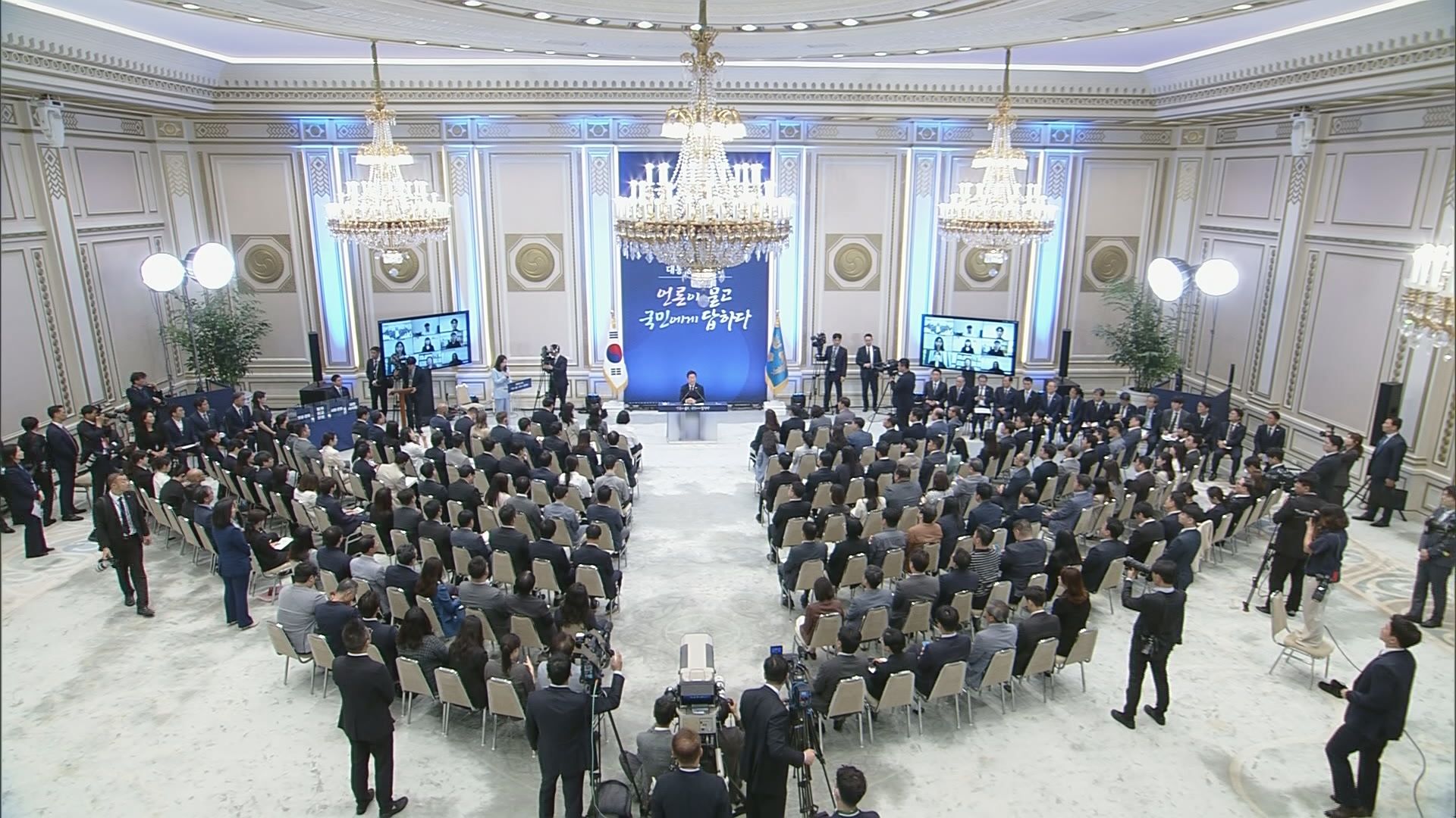 대통령 모두 발언 뒤에 2시간 동안 대부분은 4개 분야에 관한 기자들의 질의 응답으로 이뤄졌습니다. 대통령의 발언을 좀 요약해 보면, 내각과 참모진 인선에 관한 질문에는 지지층과 야당의 기대에 못 미치는 측면도 있어 보이지만, 시간을 두고 지켜봐 달라고 했고요. 성향이나 인간관계 등으로 판단해 배제하기 시작하면 남는 게 없다고도 했습니다.