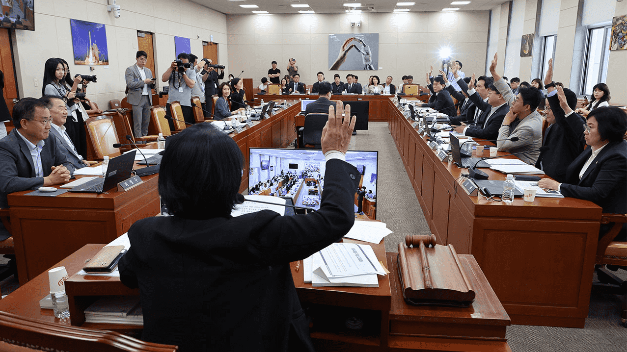 7월 7일 과방위 전체 회의에는 국회의원 의원이 일부 퇴장하고, 민주당 의원들 주도로 개정안을 처리했습니다.