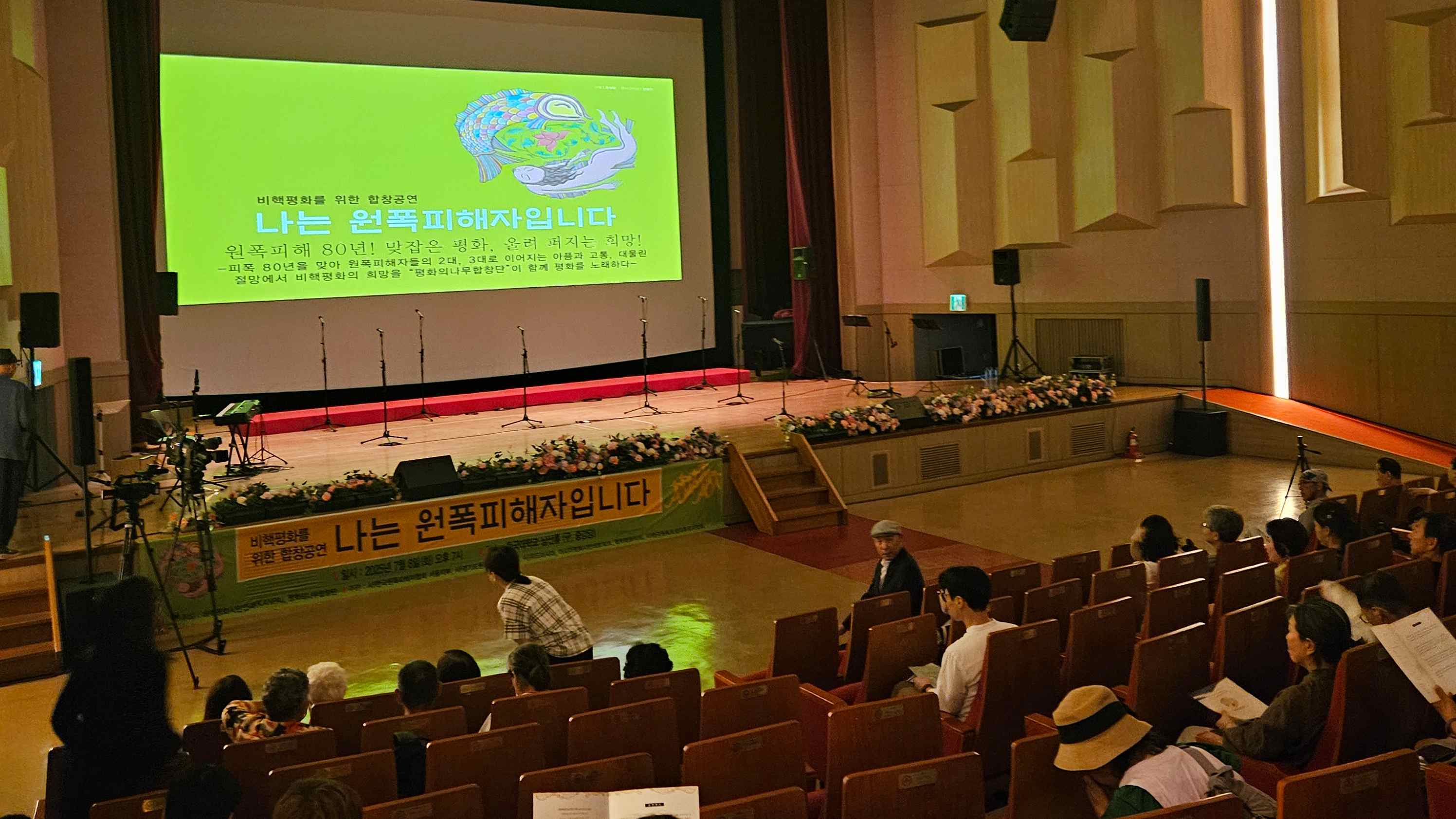 '나는 원폭 피해자입니다-맞잡은 평화, 울려 퍼지는 희망!'을 주제로 한 이번 음악회는 한국비핵평화시민연대와 평화의나무합창단이 주최했습니다.