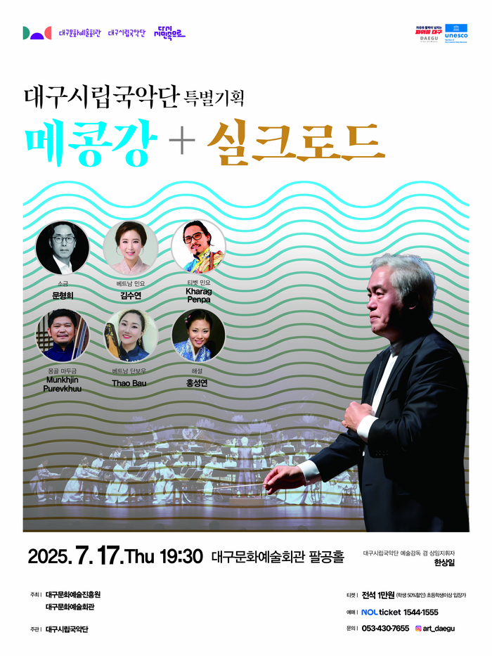 대구시립국악단은 특별기획 공연 '메콩강+실크로드'를 7월 17일 오후 7시 30분 대구문화예술회관 팔공홀 무대에 올립니다.