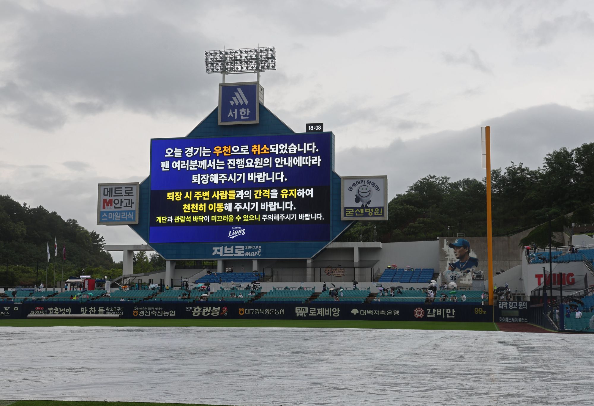 19일 대구삼성라이온즈파크에서 예정됐던 2025 신한 SOL 뱅크 KBO리그 키움히어로즈와의 맞대결은 남부지방 중심으로 굵은 비가 이어지며 다시 취소됩니다.