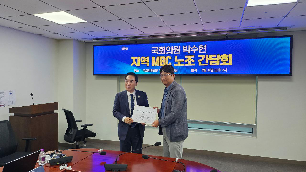 박수현 균형성장특별위원장은 지역 MBC 지부장단과 7월 31일 국회의원회관에서 간담회를 갖고 이같이 말했습니다.