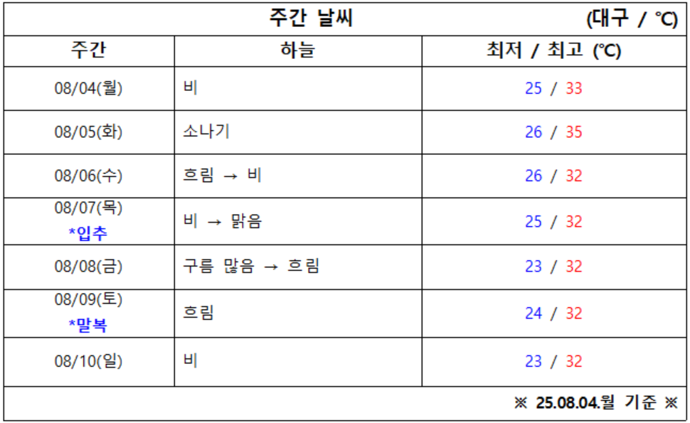 8월 2주 차 대구·경북 ‘날씨 체크’ 시작합니다.