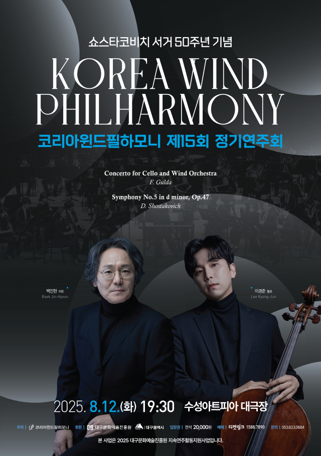 국내 대표 관악 전문 연주단체 '코리아윈드필하모니'가 제15회 정기연주회로 러시아 작곡가 쇼스타코비치의 서거 50주년을 기리는 무대를 대구 수성아트피아 대극장에 올립니다.