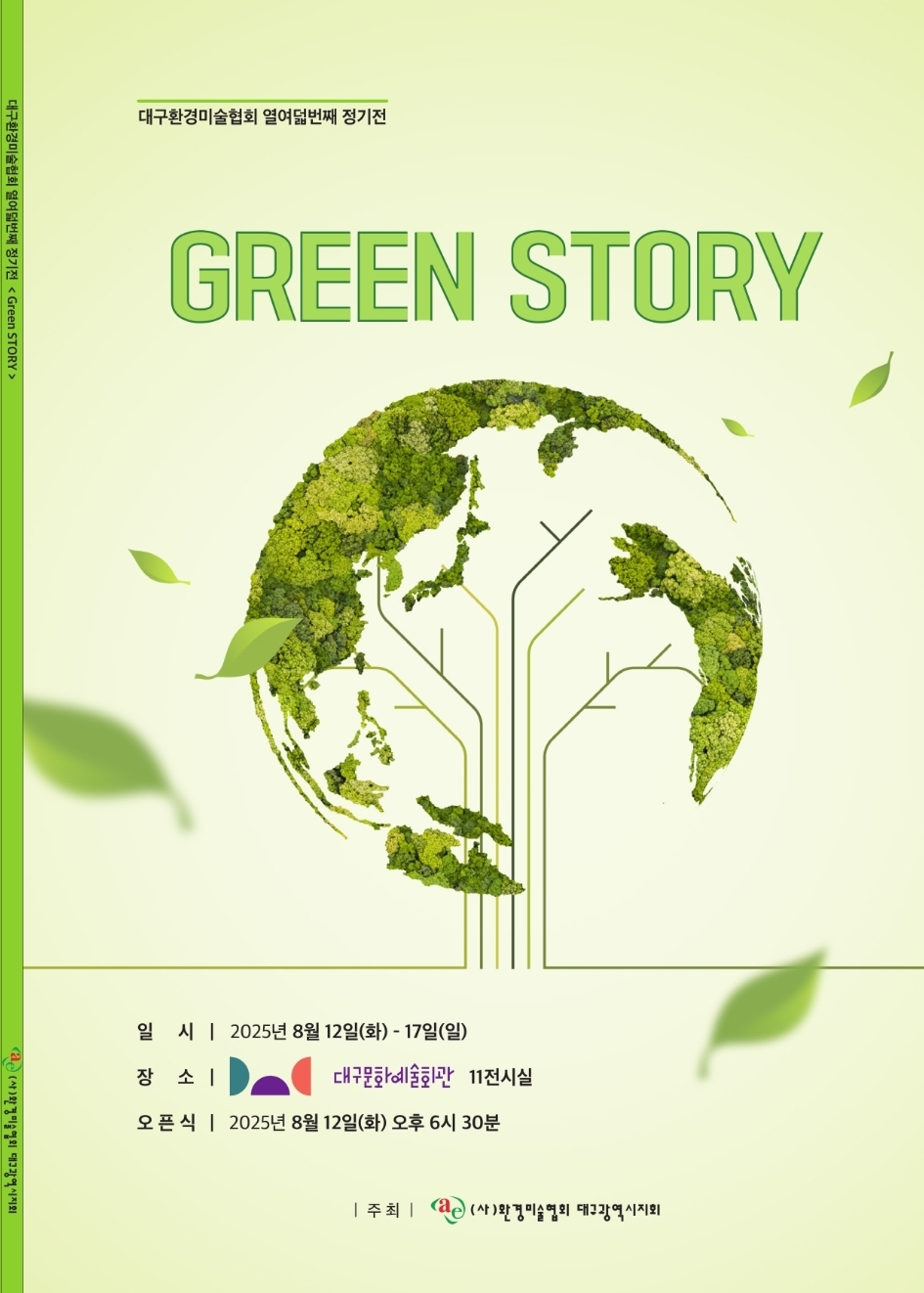 대구환경미술협회가 8월 12일부터 17일까지 대구문화예술회관에서 ‘예술로 만나는 자연, 마음으로 잇는 녹색 지구’를 주제로 ‘GREEN STORY’ 전시회를 엽니다.