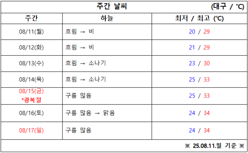 8월 3주 차 대구·경북 ‘날씨 체크’ 시작합니다.