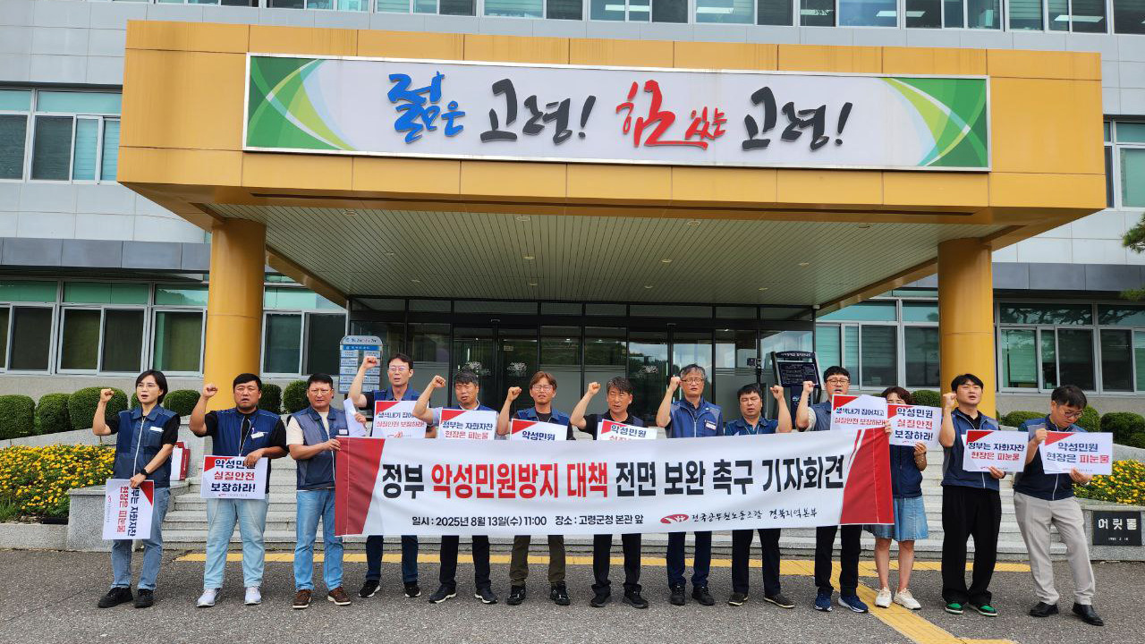 경북본부는 8월 13일 고령군청 앞에서 기자회견을 열고 "정부가 '악성 민원 방지 및 민원 공무원 보호 강화 대책'을 수립해 시행한 지 1년이 지났음에도 현장 체감도는 근본적인 문제를 해결하기에는 역부족"이라고 호소하며 "실효성 있는 대책 마련을 촉구"했습니다.