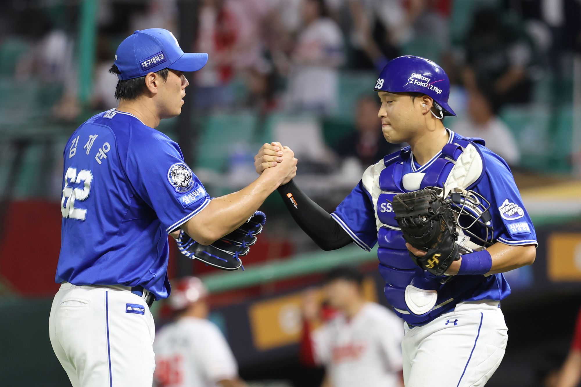 빠르게 마운드에 오른 김재윤은 첫 타자 김민성에게 안타를 허용했지만, 남은 아웃 카운트 4개를 삼진 2개를 포함해 깔끔하게 처리하며 시즌 6번째 세이브를 챙깁니다.